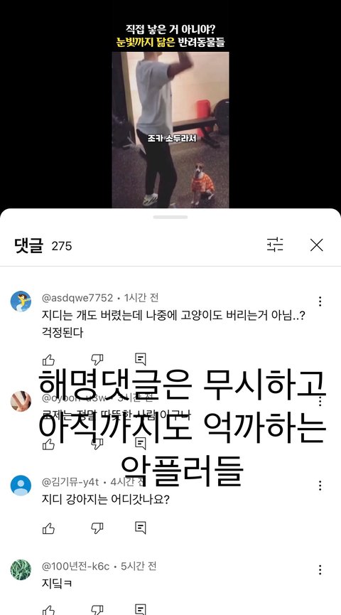 (조회수도 낮은 업로드 초반에 여돌썸네일보고 들어온 사람들 수백명이 지디 강아지 가호에 대해 궁금해할 확률은? )