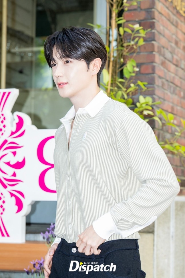 현재는 옥스포드 셔츠와 블랙 팬츠로 멋을 냈다. 잘생긴 비주얼이 돋보였다.