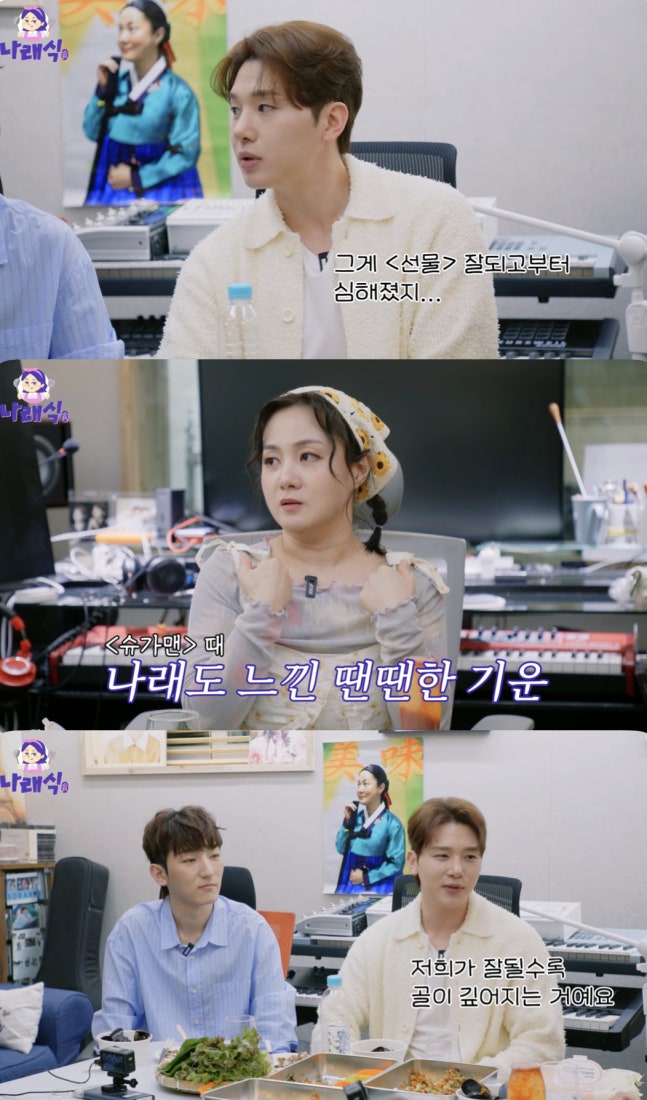 그러면서 "처음 이렇게 많은 관심을 받다 보니까 관심의 지분이 누구 것인지 생각하지 않았을까 싶다"라며 "'선물'이 잘 되고부터 심해졌다"라고 솔직하게 고백했다.