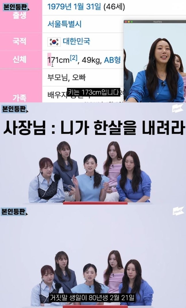 그런가하면 김희진은 "1979년 5월 16일 생. 근데 저랑 이지언니랑 저랑 같은데. 사장님이 그때 저보고 한 살 내리라고 했다. 그래서 1980년생이 거짓말 생일이다"라고 이야기했다.