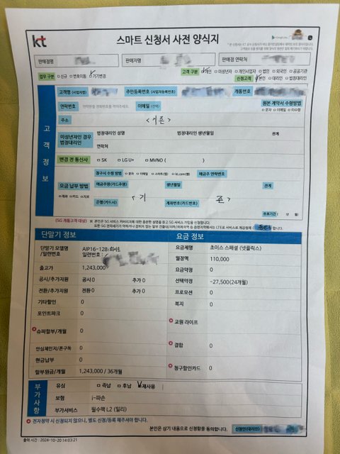 2024년 10월20일날에 폰을 개통했습니다.