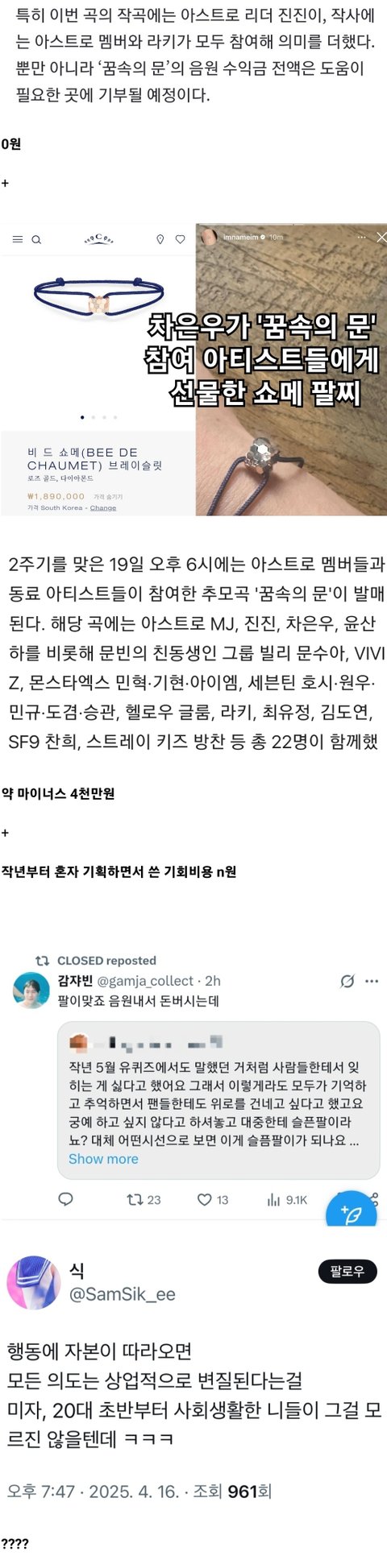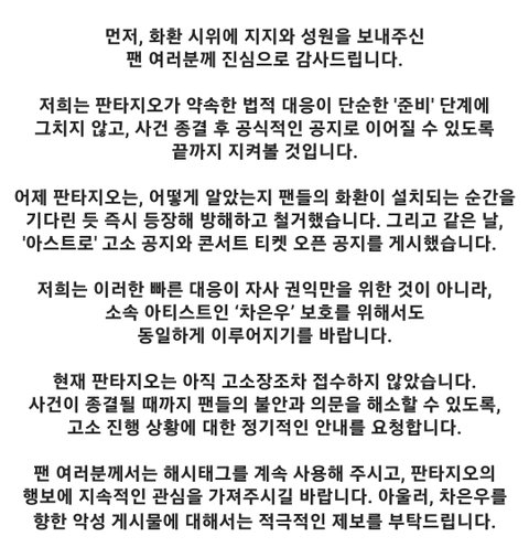 그리고 오늘 차은우가 아닌 아스트로 그룹으로 고소 공지가 올라오긴 했지만, 지금까지의 대응을 보면 제대로 진행될지, 보여주기 식 입고소 공지인지 의문임