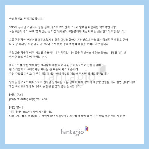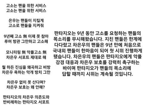 데뷔 후 9년 동안 고소 공지도 한 번 없었고, 결국 최근엔 해외 팬들과 국내 팬들이 트럭과 화환 시위까지 진행함