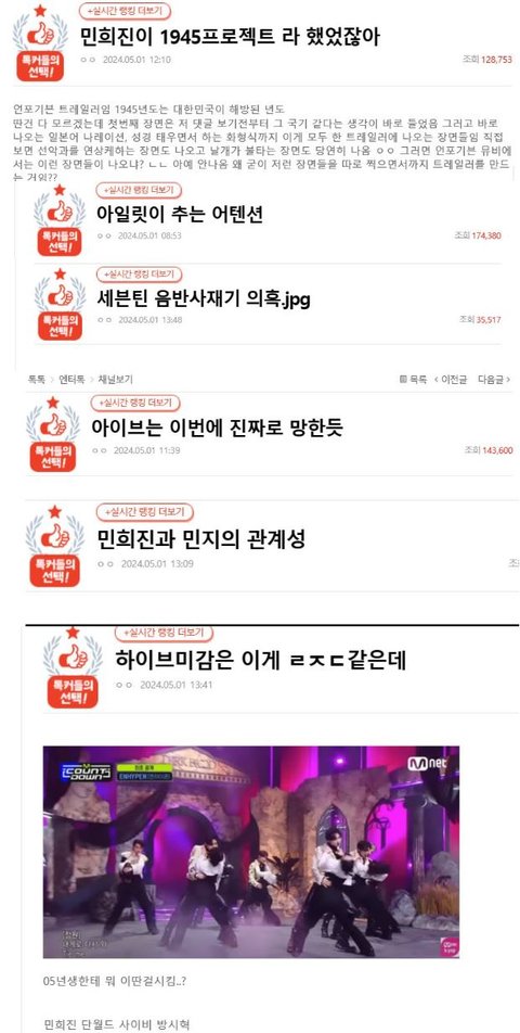 (아래는 당시 이 네이트 게시판에 베스트 톡들임  거이 일년 내내 아일릿 ,르세라핌,하이브 비난 비하 선동 억까 하는 글이 올라 옴)