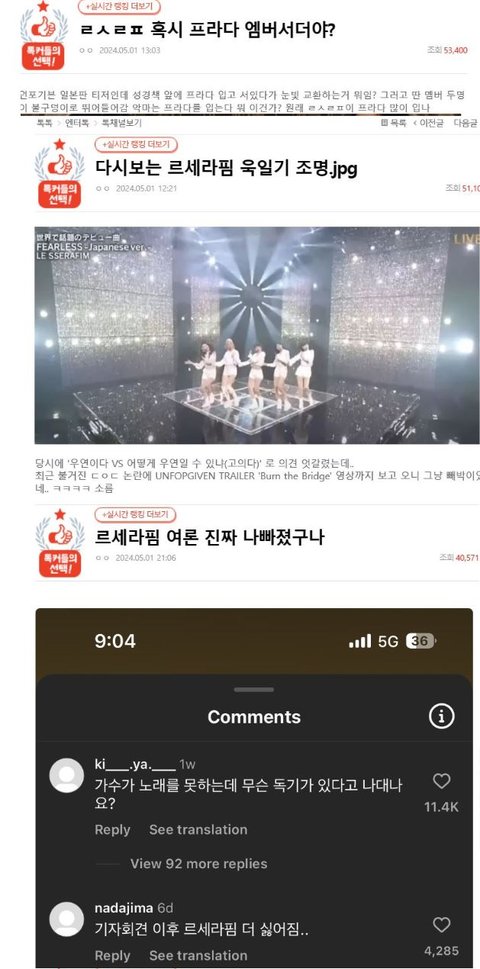 그때 아일릿은 몰라도 르세라핌 여론 나락갔던건 코첼라가 컸지 무슨