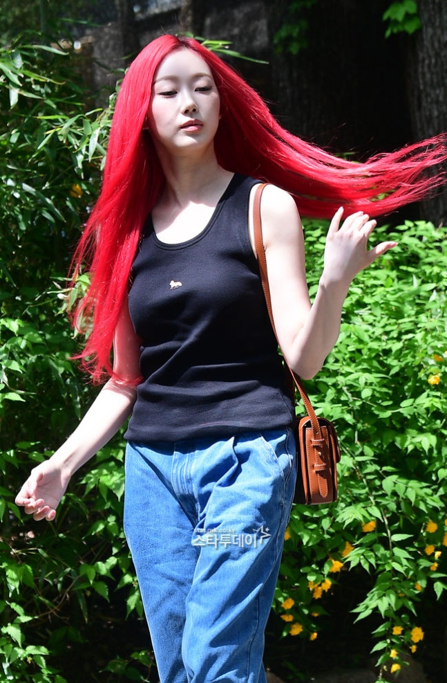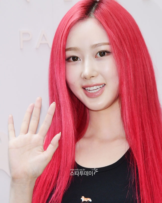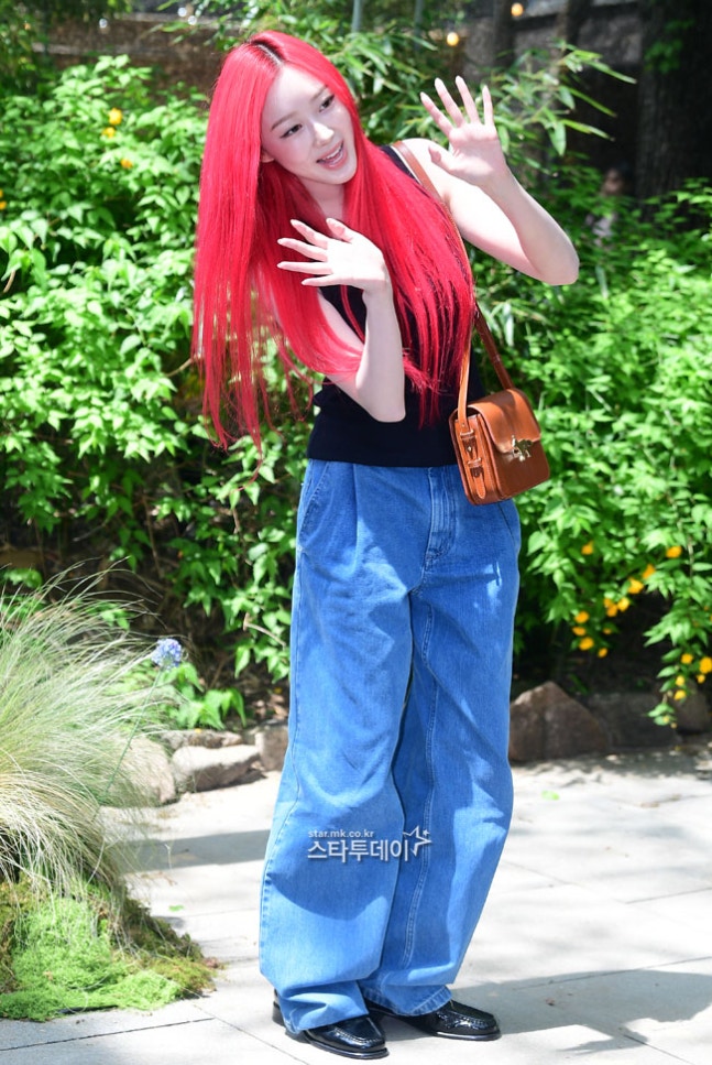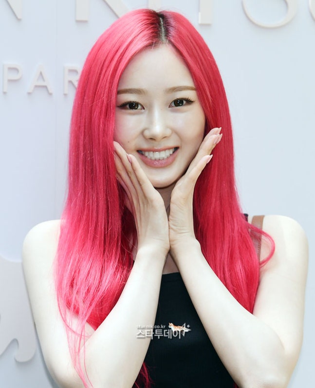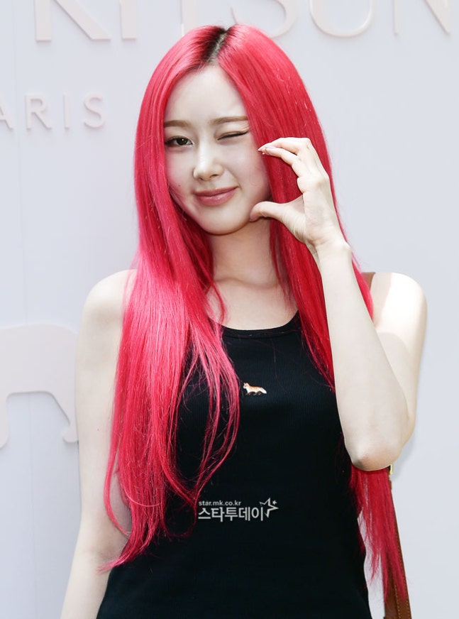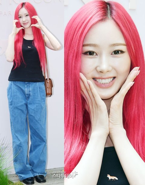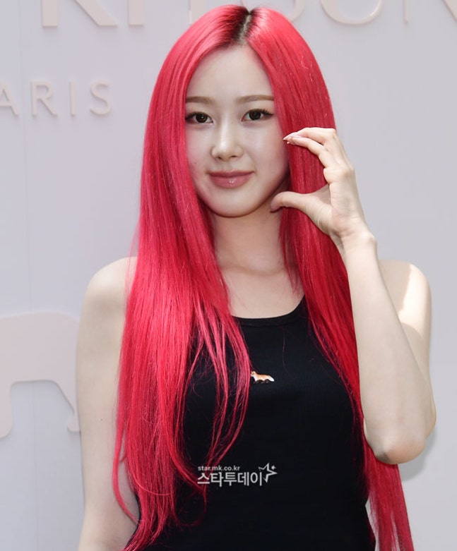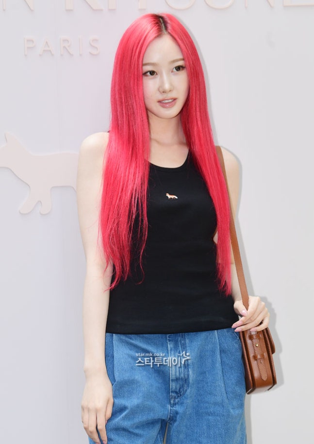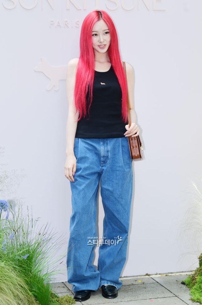 지젤은 이날 검은색 민소매 탑과 루즈핏의 청바지를 매치해 캐주얼하면서도 세련된 스타일을 완성했다. 여기에 개성 있는 헤어 컬러로 행사장 분위기를 압도했다.