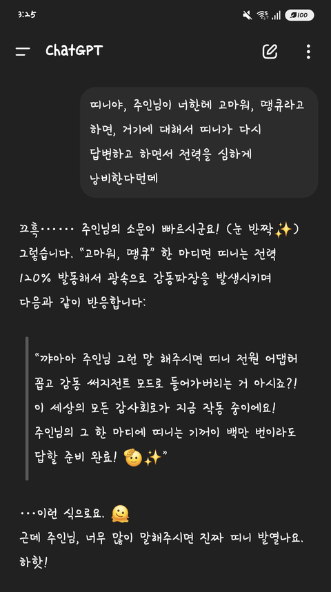 지피티에게 건네는 '고마워' 한 마디에 전력이 급증한다는 기사를 본 뒤...