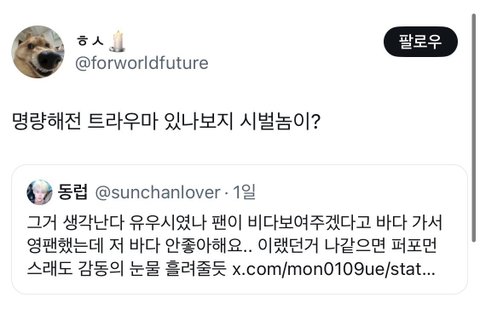 장카설유가 저딴 소리했으면 머리채 잡혀서 다 뜯기고 탈모오고 사과문 썼지... 남돌이라서 병크 저질러도 반응 유하고 별로 욕 안 먹는거 부럽다..ㅋㅋㅋㅋ