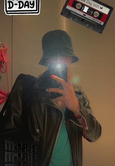 공개된 사진 속 지드래곤은 가죽 재킷에 버킷햇을 쓴 채 거울 셀카를 담았다. 또 이날 MBC 예능 '굿데이' 신곡 발매를 알리는 데 한창이었다.