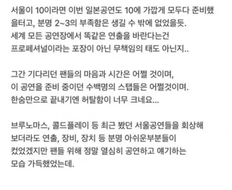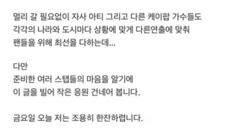 슴콘 때도 그렇고 계속 아티스트 탓으로 쳐 돌리고 있냐 이새끼들은 블라인드에서 자꾸 지들은 노력했는데 아티스트 잘못이 더 크다 이런식으로 글 싸지르냐고 그럼 사건 경위를 설명해 제발;