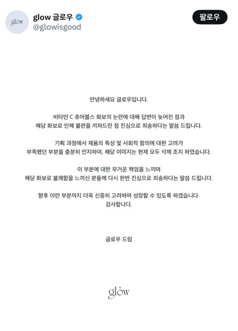 사과하고 시정했다는데 저 첫번째 비타민? 사진만 삭제했대... 다른거도 충분히 보는 사람이 불쾌할 거 같은데 화장품 홍보 효과는 1도 없고 뭘 표현하려고 한지 의도를 모르겠음 원래 저기 비비 유명해서 호감이었던 브랜든데 저걸 홈페이지에 올려서 사람들이 이상하다고 할때까지 뭐가 잘못된지 몰랐다는 거도 이상함..
