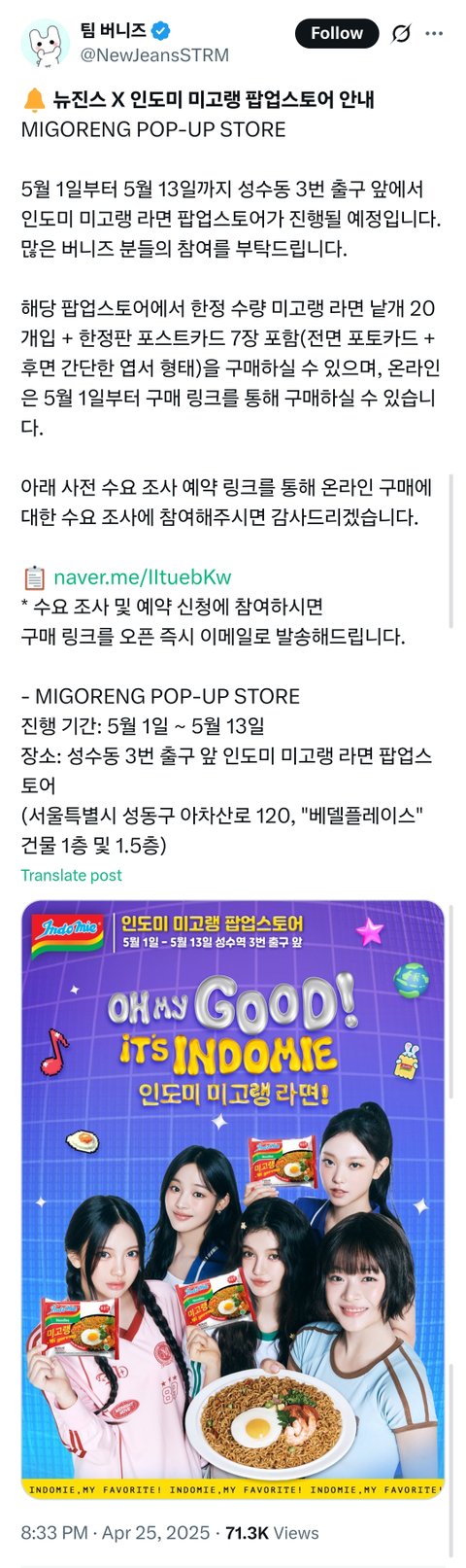 인도미 팝업한대ㅋㅋㅋㅋㅋ