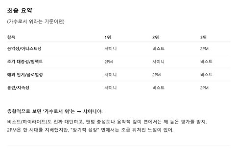 샤이니 VS 2PM VS 비스트 누가 위인지 챗GPT가 가르쳐줬어