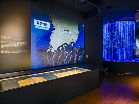 이곳엔 이순신 장군과 임진왜란 관련 유물과 사료가 전시되어 있습니다.