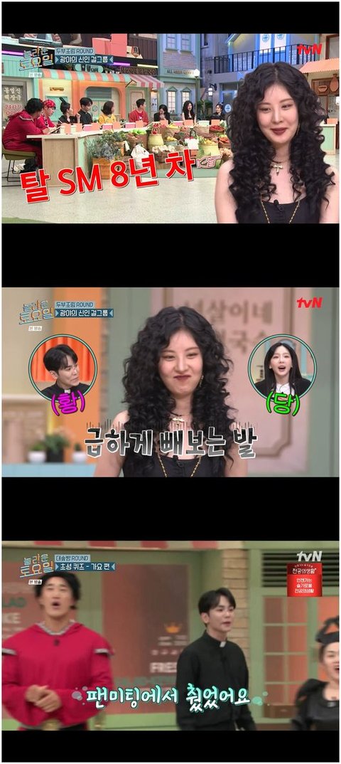또한 이들은 받쓰 2라운드가 SM 신인 걸그룹이란 사실을 알자 당황스러운 눈빛을 금치 못했다. 서현은 “저는 근데 SM이 아니다. 나온 지가"라며 어쩔 줄 몰라했다. 서현은 이미 8년 전에 SM에서 나왔던 것이다. 이에 키는 “하츠투하츠 노래는 들었다. 그런데 소녀시대처럼 귀에 팍팍 꽂히는 느낌이 아니라, 나른하고 몽환적이다”라며 걱정 반 자신감 반이 섞인 모호한 얼굴로 웃어보였다./osen_jin0310@osen.co.kr