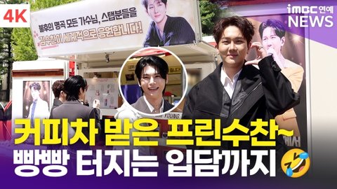 이날 현장에는 가수 김수찬의 팬들이 준비한 커피차가 자리했다. 김수찬은 동료 가수 김준수와 함께 커피차 앞에서 포토타임을 가지고 팬들과 간단히 인사하는 시간을 가졌다.