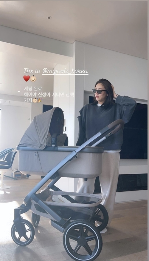 가수 겸 배우 손담비가 사랑스러운 육아 일상을 전했다. 사진=손담비 SNS특히 마지막 사진에서는 직접 세팅한 유모차 옆에 선 손담비가 “세팅 완료! 헤이야 신생아 지나면 산책 가자”며 설렘 가득한 소감을 덧붙였다. 편안한 트레이닝 복장에 자연스러운 스타일링까지, 일상 속 여유로움과 설렘이 고스란히 담겼다.