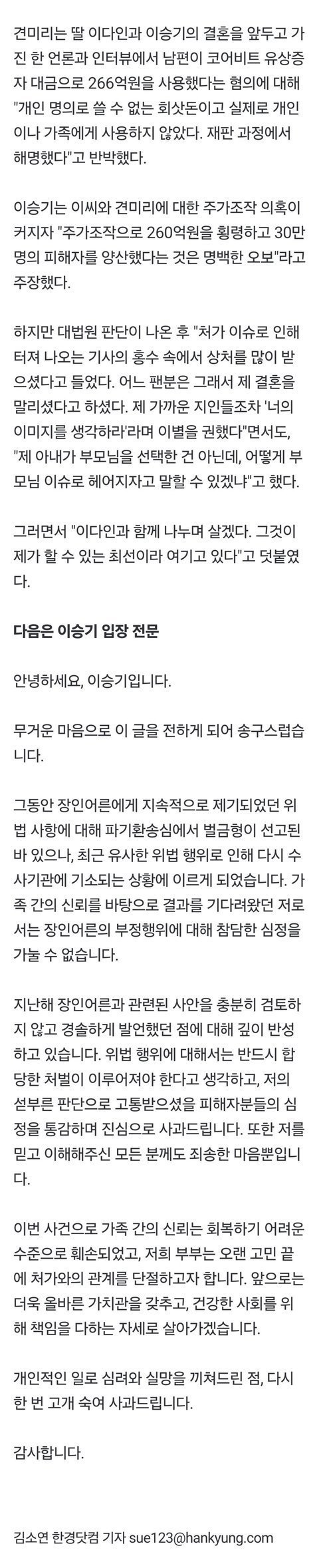 이승기 처가와 연끊겠다
