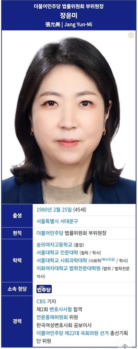 (사진2 설명) 장윤미(張允美, Jang Yun-Mi) 변호사 / 더불어민주당 법률위원회 부위원장 <출처: NAVER 나무위키>