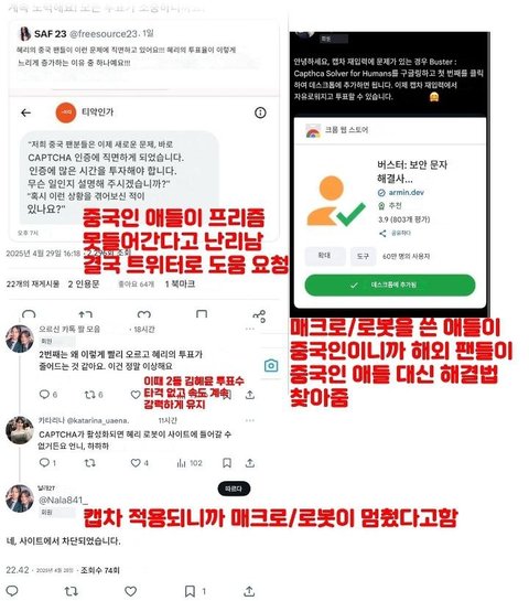 캡차 적용된 날 중국팬들이 투표 못한다고 진짜 김혜윤이랑 차이가 계속 떨어지니까 여기저기 급하게 물어보고 난리났거든..