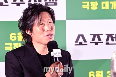 [마이데일리 = 곽경훈 기자] 24일 오전 서울 삼성동 메가박스에서 진행된 '소주전쟁' 제작발표회에서 유해진이 노래를 부르고 있다.