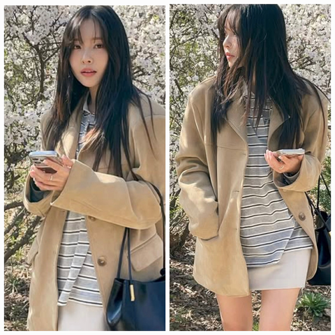 공개된 사진 속 이솔이는 따스한 햇살과 벚꽃 그늘 아래 서 있다. 베이지 톤 재킷에 스트라이프 셔츠, 미니 스커트를 매치한 차분한 룩은 과거의 고통을 딛고 돌아온 일상 속 안정감을 담아낸다. 검정 버킷백을 툭 걸친 채 핸드폰을 들고 서 있는 모습엔, 봄처럼 담담하고도 단단한 분위기가 배어 있다.