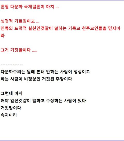 외국인와 자국민을 차별없이 대해주어야 한다는 PC주의 거짓 사상을 믿지 마라 ...그거 거짓말이다 .....
