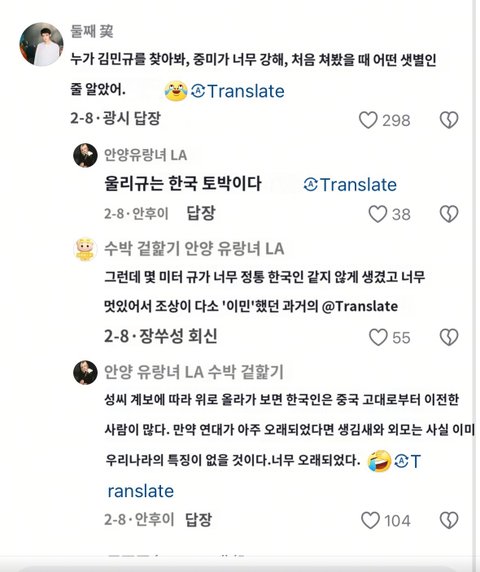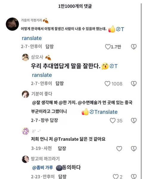 한국에서 이런 얼굴이 나올 수 없다는 둥.. 역시 조상이 중국인이였다는 둥.. 중국으로 반환하라는 댓글 등등 많음 (...)