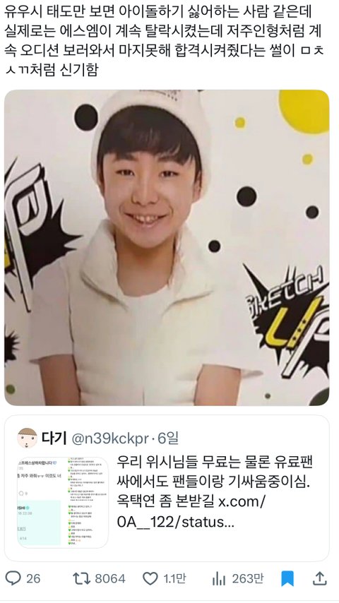 유우시 한번 떨어지고 두번째 때 붙었음 한번 떨어진게 저주인형 소리들을 일임? ㅂㅅ들이 과장에 허풍에 ㅈㄹ들을 하네