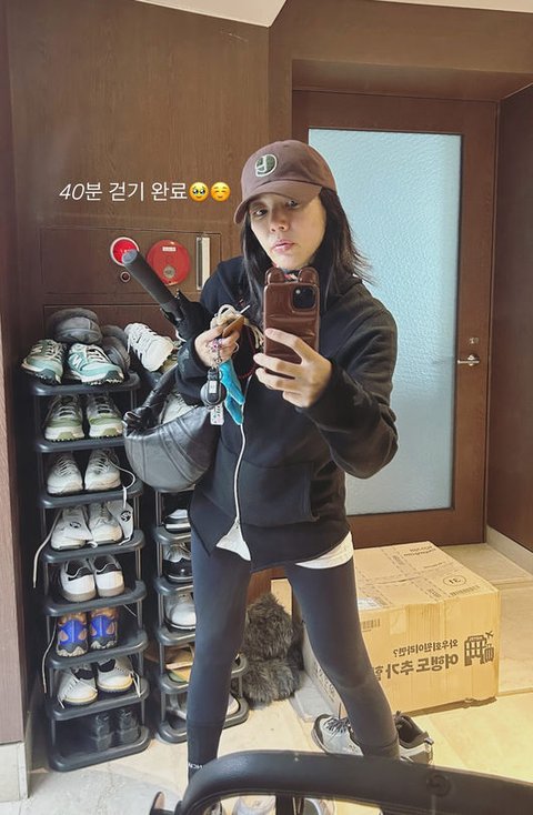손담비는 "40분 걷기 완료"라는 멘트와 함께 자신의 사진을 남겼다. 화장기 없는 민낯의 손담비는 레깅스에 몸에 딱 달라붙는 후드 차림으로 두터운 운동복을 입고 있었다. 비 오는 날씨라 하지만, 봄이 완연한 지금을 생각하면 조금은 더운 운동복 차림이 아닌가 싶다.