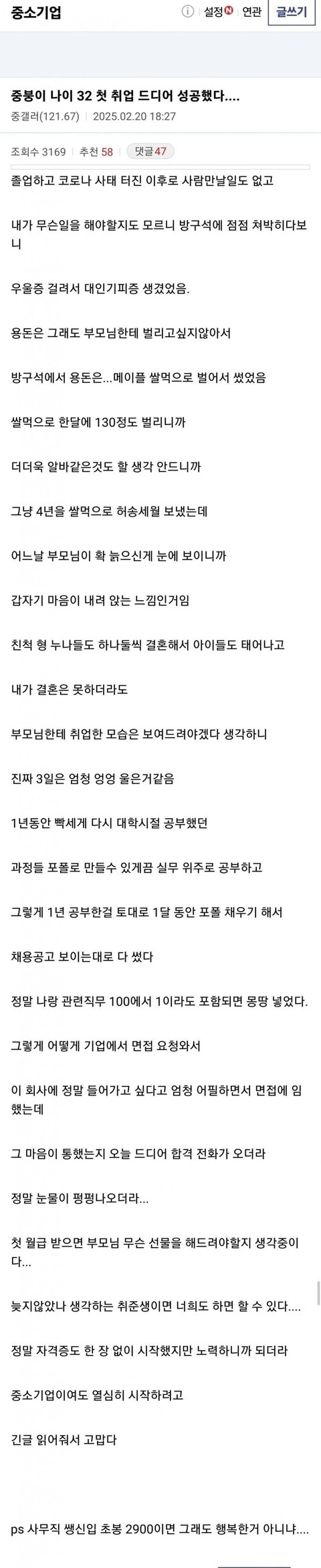 첫 취업 성공한 30대 디시인..jpg