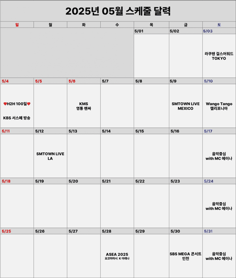 하츠투하츠 2025년5월 스케줄달력