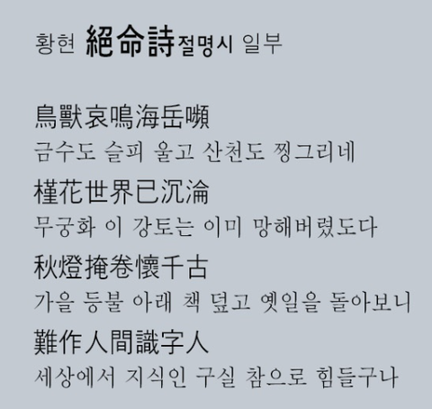 나라를 떠나겠습니다. 감사합니다 중도 분들 누구를 뽑으실건지일제에게 나라를 뺏기고 절명하신 황현 선생님의 심경이 너무나 이해 갑니다한국!!!!!! 이렇게 인물이 없나요??