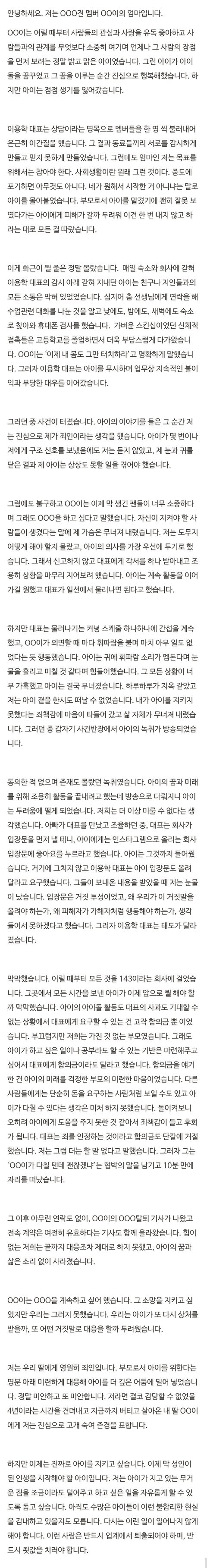 143엔터대표가 성추행한 메이딘멤버 어머님 글쓰신거봐ㅜㅜ
