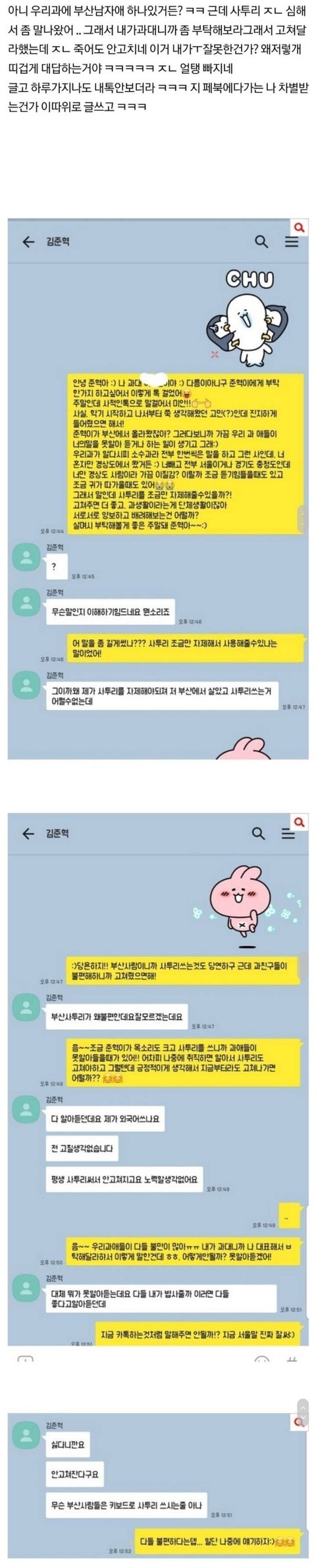 저여자애 나중에 흑역사일듯.... 사회생활 10년차지만 사투리 불편하다 생각해본적없는데 ㅋㅋㅋㅋ 뭘 못알아들어 ㅋㅋㅋ 그럼 사투리 나오는 드라마 영화는 자막달아야되나?