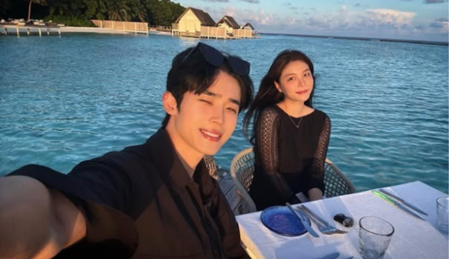공개된 사진에서 두 사람은 물 위에 위치한 프라이빗 레스토랑에서 저녁을 즐기며 로맨틱한 분위기를 연출했다.