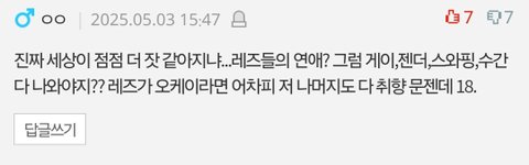 야ㅅㅂ얘네가 다 너네같을줄아냐 악플 단 판년들이 설리조문웅애웅ㅇㅈㄹ 안쓴애도있어 니네가 썼더고 얘네도 써재낀거아님 그리고 썼던애..