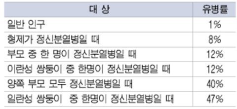 조현병의 유전확률