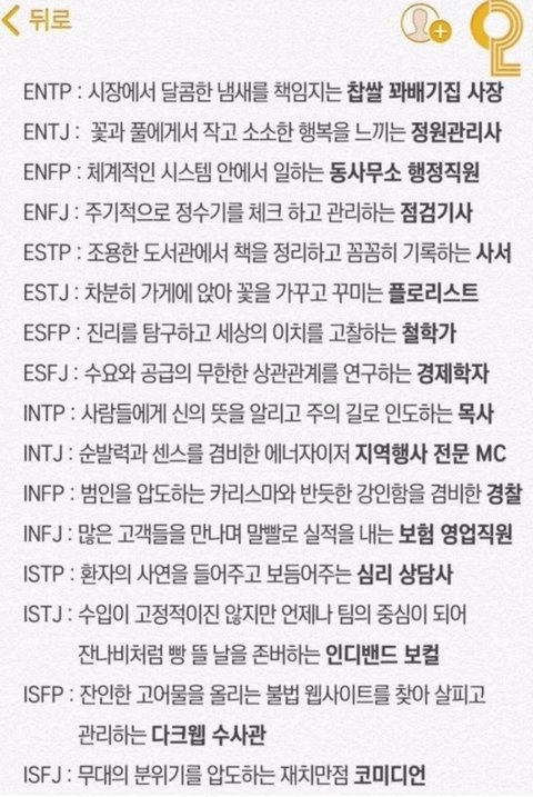 MBTI별 직업