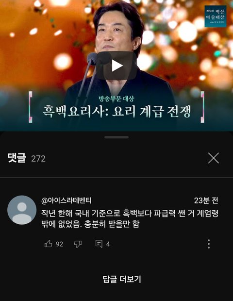 드라마 부문 대상 따로 있는줄… 갑분흑백요리사 뭐노 ㅋㅋㅋㅋ