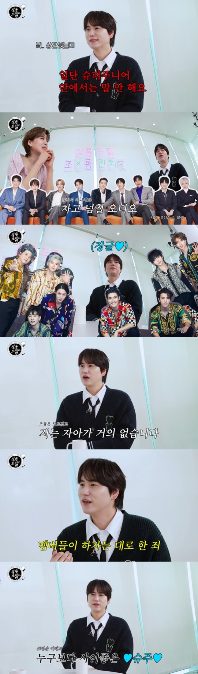 규현은 "슈퍼주니어에서 뭐 할 때는 의견을 안 낸다"라고 전했다. 장도연이 의견을 자주 내는 멤버가 누구나고 묻자, 규현은 "의견을 자주 내는 게 은혁, 이특, 려욱, 예성. 웃음으로 희철, 진지하게 시원, 동해 씨는 참여 안 하는척하면서 뒤에서 의견 낸다"라고 전했다.