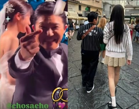 가수 지드래곤이 촬영한 방송인 조세호 결혼식 현장, 신혼여행 중 포착된 것으로 알려진 조세호와 그의 아내 뒷모습 /사진=지드래곤 인스타그램 스토리, 온라인 커뮤니티