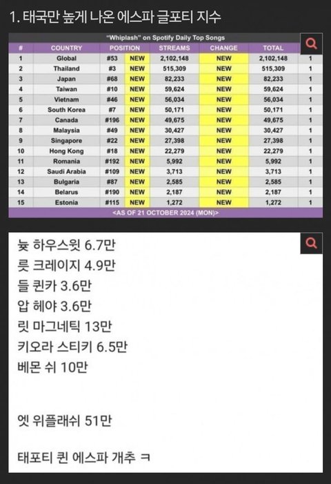 미포티 미진입하고 250만 스트리밍을 기록한 최초의 kpop그룹 태국국민가수 태국퀸 에스파!!