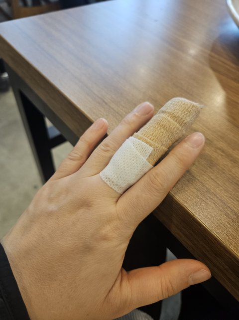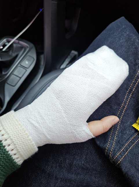 3월말 샤브샤브 뷔페집을 가서 월남쌈 재료와 뜨거운 물을(라이스페이퍼물) 담아 자리로 가는길 손위에서 물그릇이 쩍하고 갈라지며 손에 화상을 입음.