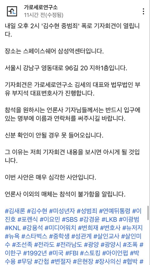 김새론 터뜨렸을 때도 한참 너튭으로만 풀다가 나중에 기자회견 열더니 이번엔 바로 기자회견인거보니까 좀 큰건가본데