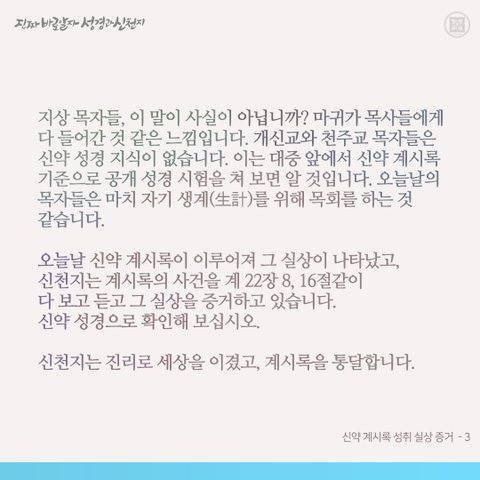 신약 계시록 성취 실상 증거를 들어 보셨나요?