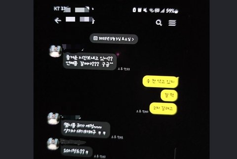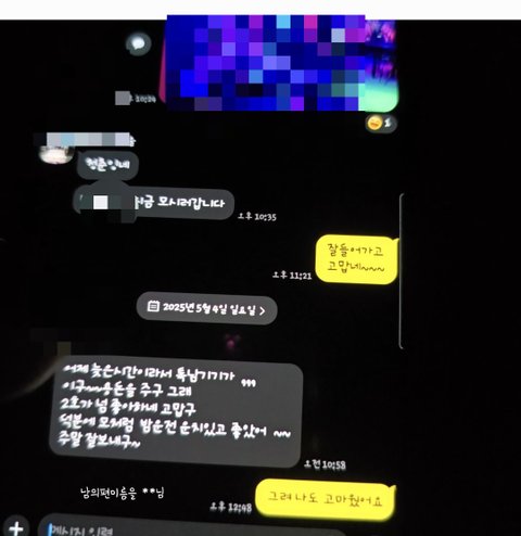 집에 언제갈꺼냐며 연락을하고 둘이 사진 톡 전화 주거니받거니 하고