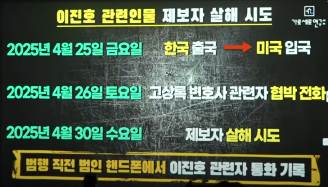 이어 "녹취를 가지고 있던 제보자분이 한국 시간으로 5월 1일, 한국과 중국에서 넘어온 두 명의 괴한에게 피습을 당했다. 목부위를 칼로 9번이나 찔렸다. 가족들이 더 이상 있다가는 사태가 커질 수 있기 때문에 제보자 가족들이 일부분만이라도 공개해달라고 했다"며 "명백한 살인교사 사건"이라고 주장했다.