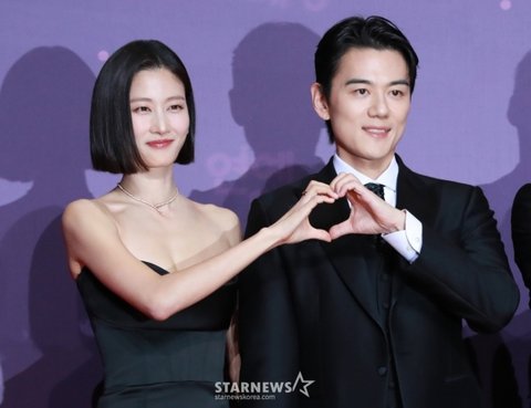 이현이-홍성기 부부가 29일 오후 서울 상암동 SBS 프리즘센터에서 진행된 2023 SBS 연예대상 포토월 행사에 참석해 포즈를 취하고 있다. /2023.12.30 /사진=이동훈