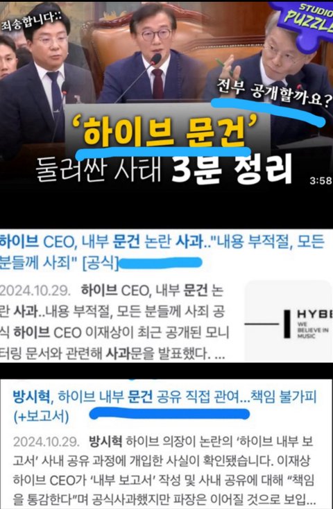 +여태까지 나온 방시혁과 하이브의 인성논란사진과 문건논란사진임ㅉ